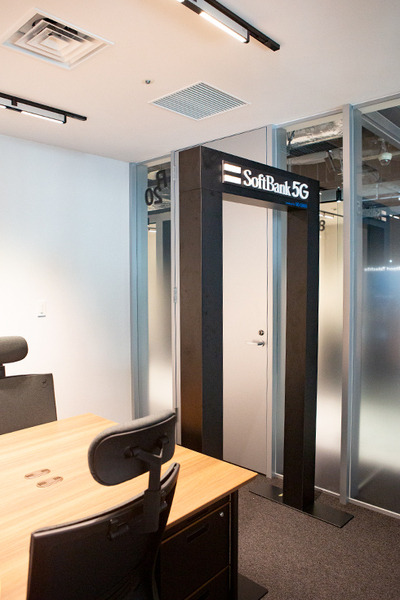 1階を後にして8階に上がると、そこは5G通信が体験できるフロア。「スマホによるフロア案内AR」のデモが行われていた。スマホをかざすと、景色にオーバーレイで様々な情報が表示されるしくみだ。例えば、8階には小ホール(ポートスタジオ)があるが、そこに向かう方向が画面内に矢印で表示されたり、イベント開始までの残り時間が表示されたりするデモを見ることができた。