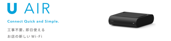 業務用Wi-Fi『U AIR』は従来のような回線工事が不要で、コンセントに挿すだけですぐにインターネットとWi-Fiが利用できる。コンパクトなボディにはLAN ポート2口と5GHz帯Wi-Fiを内蔵。混雑時には業務用通信を優先できる機能を搭載しているため、POSレジや電子決済等の業務用通信にも最適。また、万が一の通信トラブルに備え、24時間365日遠隔サポートと駆け付け保守を標準付与している。