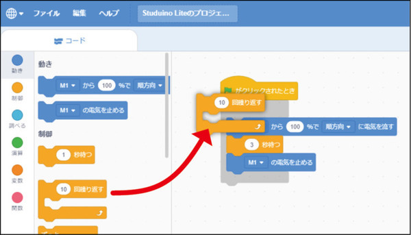 プログラミングには全国の小中学校でも採用されている「Scratch 3.0」をカスタマイズした専用のソフトウェアを使用。難解なプログラミング言語を覚える必要がなく、直感的な操作でプログラミングを行うことが可能。小学校で使われる理科の教科書に掲載されている、コンピューターとセンサーを活用して電気を効率的に利用する内容もカバーしているため、先取り学習用教材としても使用できる。