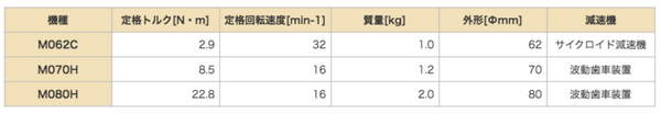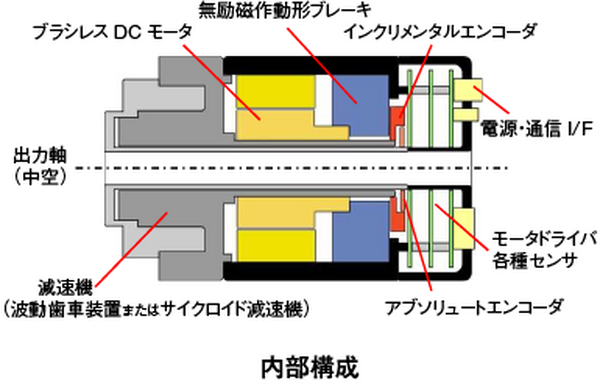 | 減速機 | 波動歯車減速機、又は、サイクロイド減速機(減速比50~120) |