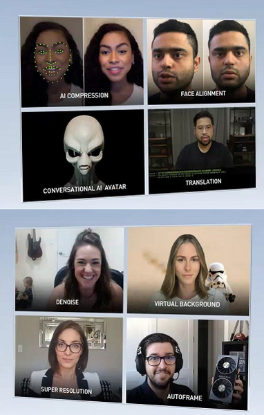 コロナ禍もあって、ビデオ会議が注目されているが、映像の解像度を上げたり、音声ノイズを除去したり、本人や背景をエフェクトしたり、別の言語に瞬時に翻訳したり、リアルタイムのアクセラレーションやエフェクト処理を行う技術「MAXINE」が発表された。
