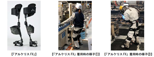 「アルケリスFX」は医療従事者用のアシストスーツ「アルケリス」を軽量化したもの。「アルケリス」は手術における長時間の立ち姿勢を支援するためにアルケリス社が2018年11月に開発。2019年11月より大和ハウス工業の工場でも導入していたが、片足約3.2kgあり、移動作業を伴う製造現場では、適合する作業範囲に課題があった。