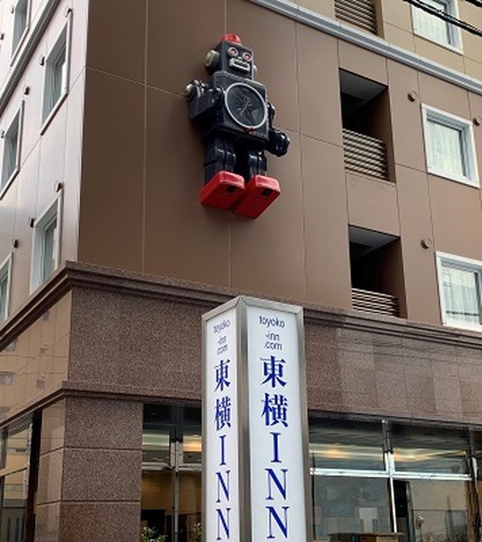 かつて、玩具の街として賑わった蔵前の街で、全長約3mの巨大ブリキロボットがホテルの入口でお迎えしてくれる。