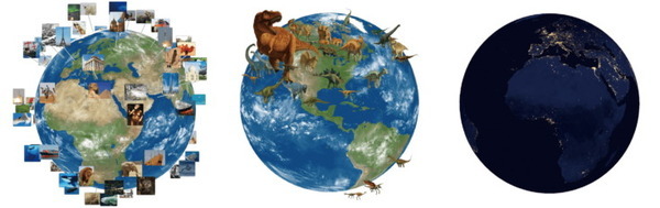 『ほぼ日のアースボール』の専用アプリのコンテンツ(すべて無料)は教育的なものから親子で遊べるものまで、大人も子どもも楽しめる19種類が現在用意されている。(「いまの地球」「一週間の地球」の新コンテンツが利用できるアプリの最新バージョン(ver.3.0)は、11月2日(月)中に公開予定)