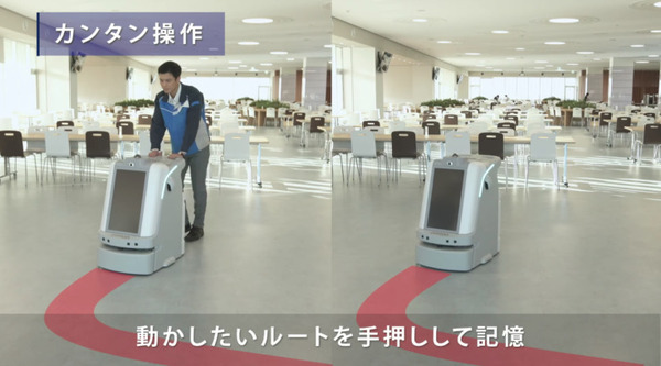 マップと作業ルートを手押しで記憶させるだけ。あとは記憶したルートを自動で走行する。バッテリ残量はロボット自身が判断し、バッテリが少なくなると自動的に充電ステーションに戻り、充電を開始する。また、クラウド機能により、エリア管理者や現場責任者は、ロボットの稼働状態、稼働エリアや稼働時間などの運用設定、カメラ映像の確認やロボットの移動指示を遠隔で行うことができる。