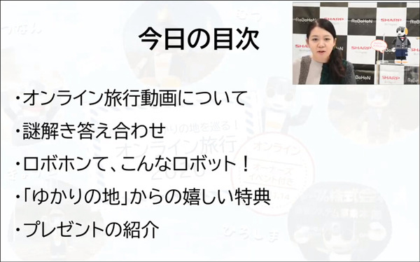 「オンライン旅行2020」では、各地で活躍しているロボホンがそれぞれの観光地の魅力を番組内で解説