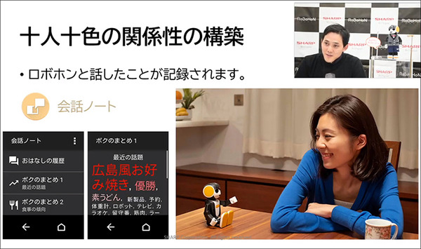 ロボホンのアプリ「会話ノート」ではロボホンとオーナーの会話によって関係を築いていく