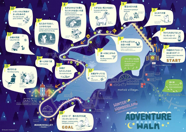 埼玉県飯能市、宮沢湖の湖畔に位置するムーミンバレーパーク・メッツァビレッジ。ここで繰り広げられる冬だけの音と光のエンタテインメントが「アドベンチャーウォーク」です。