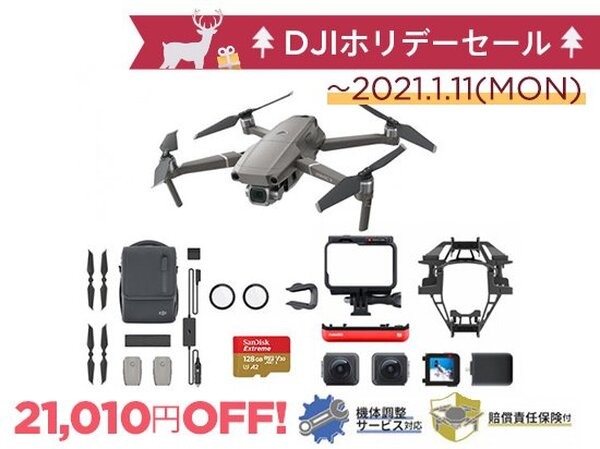 「DJI ホリデーセール」の対象となるのは入門用の小型ドローンからTVでも使用される本格的空撮ドローンに加え、自撮りにも対応した防水・耐衝撃性カメラなど、必須アクセサリーを追加したセキドオリジナルセットを含めた全31商品。以下紹介する製品の価格は一例。内容物により割引価格は変動。