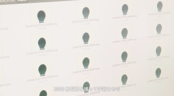 その後、このアルゴリズムを実用化するため、ブレインパッドは外部ハードメーカーと共同で、「不良品検知プロダクト」の開発を進めた。約2カ月間のハードウェア開発期間を経て完成した「不良品検知プロダクト」は、晃祐堂からの「ITや機械に不慣れなスタッフでも簡単に取扱いできるものにしたい」との要望を満たすべく、穂首が360度回転する間に内蔵カメラが約20枚の画像を自動で撮影し、AIがこの画像を解析・認識することで良品/不良品の判別をわずか数秒で行う。