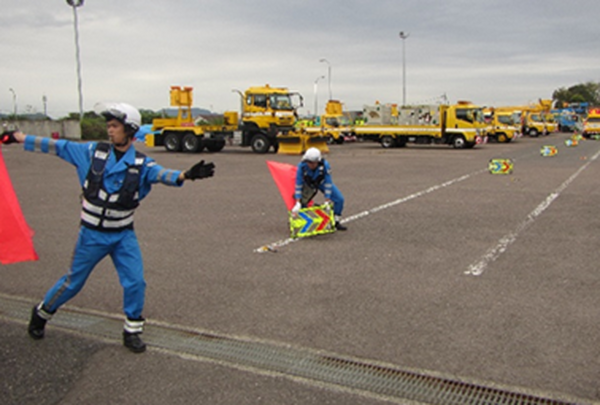 高速道路の定期巡回を行う交通管理隊員の主な業務は、事故や故障車の発生場所にいち早く駆けつけ、高速で走行する車両の近くで安全を確保しながら交通規制や事故処理などを行うことだ。このような業務を安全かつ円滑に遂行するため、高速道路外のフィールドや机上での交通規制や事故処理を想定した訓練をとおして、交通管理隊員としてのスキルアップに努めている。