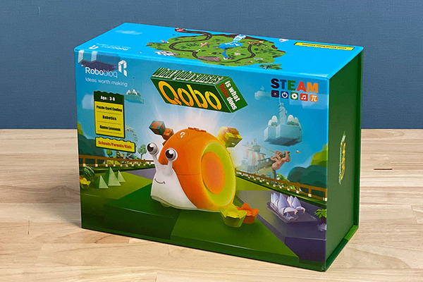 「Qobo基本セット」は、かわいいロボット「キューボ」と一緒に世界中を旅しながら論理的思考を養う、幼児から小学生低学年向けのSTEAM教材。