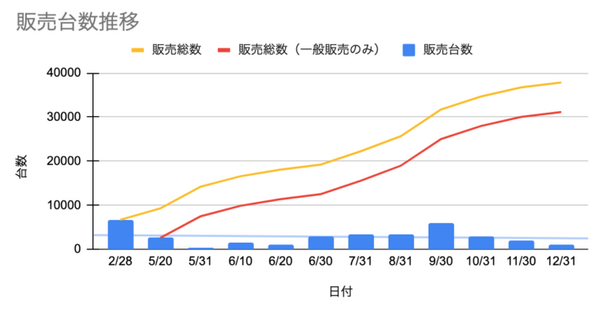 クラウドファンディングにて要望の高かった機能の追加開発などを経て、2020年5月20日には一般販売を開始。販売開始1時間で注文数が1,000台を超え、初日は合計約3,000台の販売数となった。21日間で販売数は1万台を超え、2020年12月末日には約4万台の販売を達成し、多くの人に活用されている。