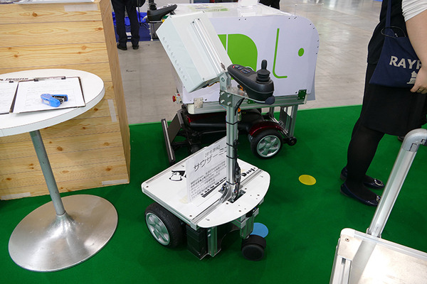 ただ、出展物以上に気になったのが遠隔からの来場者対応だった。遠隔サービスロボットの企画・開発を行なっているEnkacの遠隔接客システムを活用したもので、対話のほか、首振りもできる。時間によって対応者は異なり、筆者がブースを訪問したときは多田隈理一郎准教授が対応してくれた。