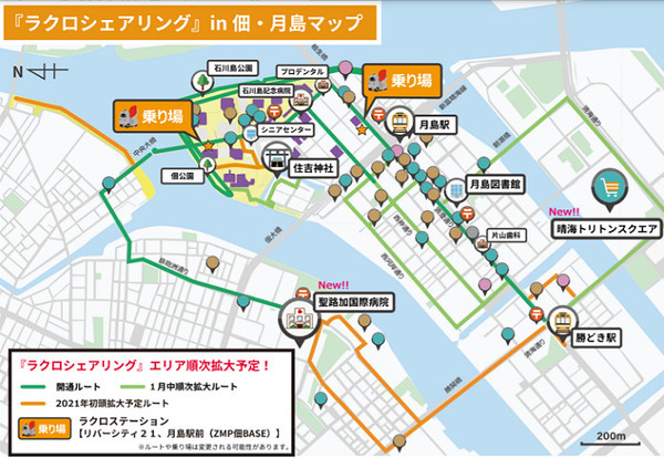 同社が一人乗りロボ「ラクロ」を活用し、昨年10月より東京都中央区の佃・月島エリアを中心に提供をはじめた移動サービス「ラクロシェア」。スマホや電話を通じて、ラクロを利用したい時間を予約することで病院や図書館など日常の様々な移動に活用できる。ラクロは免許不要で操作もいらないため、誰でも便利に利用できるサービスだ。