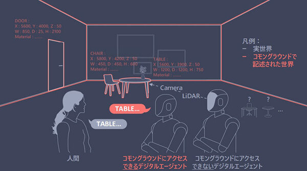コモンは「共通の」、グラウンドは「基盤」を意味します。自律走行ロボットも、今はエレベーターに乗ることが難しいですが、コモングラウンドであれば、3Dデータを介して、共通の基盤で導くことができると考えています」とコメントしている。