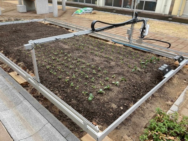 授業当日は中学部の生徒達が教室のパソコンから中庭に設置してあるファームボットのアームを遠隔操作で動かし、植物に水やりを行う操作などを学んだ。また、週末に学校に登校しなくても水やりができるよう自動設定を行い、農家の負担になる水やり作業を自動化することで、農業の負担軽減を肌で感じた。他にも、水やりをしすぎて根腐れしないよう、土壌の水分をセンサーで計測する方法も学んだ。