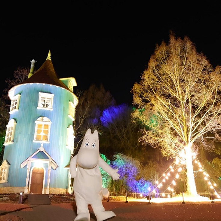 イルミネーションとソニーの音響技術「サウンドAR」を活用した冬季限定ナイトアトラクション「アドベンチャーウォーク」が3月7日(日)にフィナーレ(最終日)を迎える。ムーミンバレーパークで開催されている。