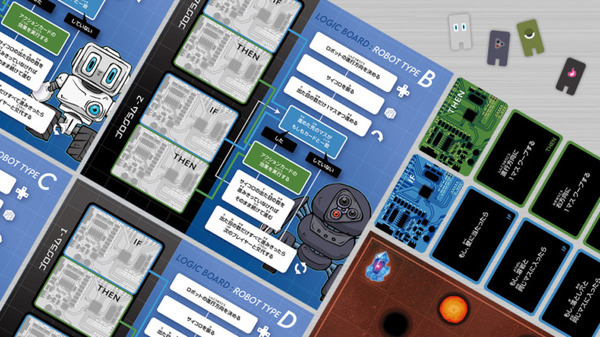 『ロジックロボット』はプログラミングの思考法を直感的に学べるボードゲーム。舞台は莫大なエネルギーをもたらす新鉱石「オメガライト」が発見された近未来。しかしオメガライトのありかは、危険いっぱいの地下深く。プレイヤーはロボットエンジニアになって、危険地帯に侵入するロボットをプログラミングし、誰よりも早くオメガライトの入手を目指す。