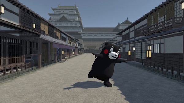 VRくまモンは熊本県が実施する「くまモン共有空間拡大ラボ」による、バーチャルスタジオで撮影した動画を活用したもの。従来、個々の動画作成や取材対応でくまモンの撮影を行っていたが、バーチャルスタジオで撮影して動画を作成することで実際の撮影は不要かつ完全なくまモンの外寸、基本動作を再現できる。