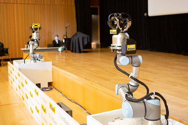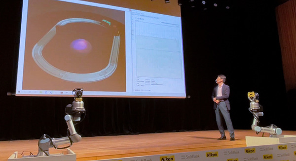 ニコンはカメラの三脚や雲台、ジンバルで培ってきた技術と、ディープラーニングなどのAI画像認識等を掛け合わせ、通信ユニット「ビジュアル・サーボ」を開発した。ちなみにニコンはあまり一般の消費者には知らせていないが、ロボティクス分野向けにインテリジェント・アクチュエータ・ユニット(モータ)の商品開発も行っている。