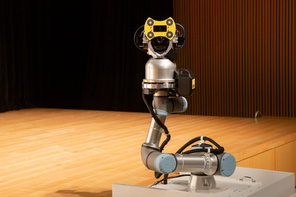 もともと2台のロボットの送受信の光軸は合わされているので左のロボットに正常に送信され、左のロボットが受け取った映像はステージの後ろのスクリーンに表示される。