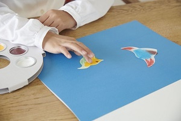 Atelier mio(アトリエ ミオ)は、指や手に絵の具をつけて描くお絵かきツール。絵の具を混ぜ合わせたり、塗りつけたり、描いたりして、子どもの心を解放するように自由に楽しめる。その自由で楽しい遊びを通して、想像する力や考える力も養う。4月29日(木)展示開始。
