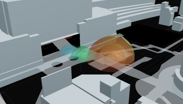 虎ノ門ヒルズビジネスタワーの緻密な屋内モデルを制作し、3D都市モデルと統合。屋内と屋外をシームレスに繋いだバーチャル空間を構築した。新型コロナウイルスの影響で大人数が対面で集まる大規模避難訓練の実施が困難になる中、バーチャル空間で複合施設における複数の避難計画のシミュレーションや、徒歩出退社訓練用のVRの構築を行った。