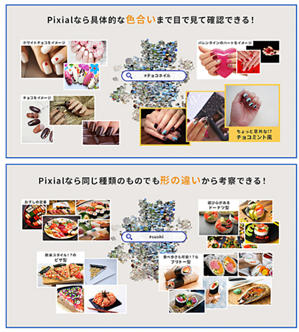 「Pixial」の最大の特徴は、独自のAIを使った画像分類機能にある。Instagram上の投稿における「投稿画像」のもつ重要性に着目し、「Pixial」では画像に含まれる情報を失うことなく、大量の投稿画像を人間の目でも分析可能にする機能を搭載。画像をテキスト化せず、そのまま分類することで、例えば言語化が難しい微妙な「色合い」や「雰囲気」の違いや、同種のものでも「形」の違いなどといったものに着目して分析することも可能になる。