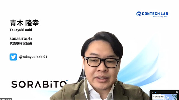 続けて、SORABITO株式会社 代表取締役会長の青木隆幸氏が講演し、同社の建機レンタルDXサービス「RENTALAPP」や、中古建機専用オークションサービス「ALLSTOCKER」を紹介した。