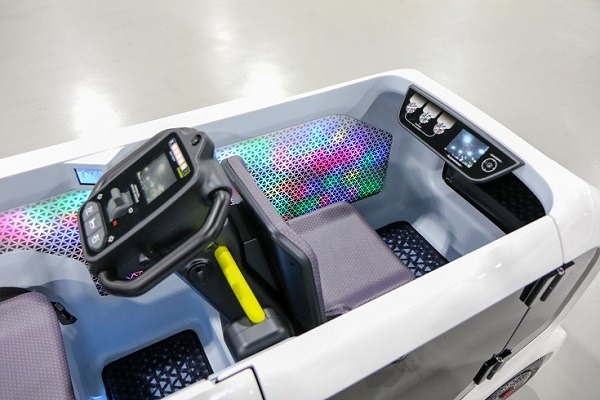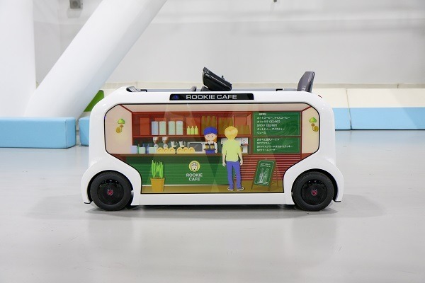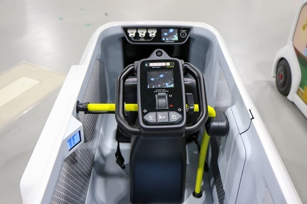 オリンピック・パラリンピックの選手村内で、選手や大会関係者の移動をサポートする巡回バスとして活躍するe-Paletteを子どもたちが具体的にイメージできるよう、外装デザインも実車に近い形になっている。後席の人が運転し、前席の子供は自動運転のような感覚で楽しめ、前後に搭載されたモニターでお互いの顔も見ることも可能。また、サイドのパネルは、カフェ・靴屋・花屋 など、数種類の中から好きなパネルを選ぶ事ができる。