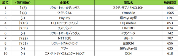 なお、同調査・集計は、同社がソニーと共同開発したテレビCMメタデータ生成システムで全国主要都市の放送をリアルタイムで解析し、テレビCMの放送履歴データを生成したものを用いている。