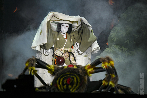 初音ミクは全盛を誇る傾城・七綾太夫役で蠱惑(こわく)的な魅力を放つ。獅童演じる保輔が「お前の心を盗みに参った」と口説くように見せかけて七綾太夫を斬る場面は、驚きの展開。太夫の亡魂と女郎蜘蛛が合体し、発光しながらみるみる隈取が現れ、悪へと変化していく場面は大迫力だ。この初音ミク悪役初挑戦は大きな見どころとなったが、しっとり唄い踊る姿も、指先まで美しくあでやかだった。