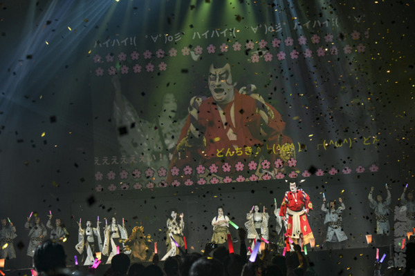 「超歌舞伎」ではこれまでも古典歌舞伎で練られてきた演技、演出術、物語性が取り入れられてきたが、今回はさらに拡大。暗闇のなかで宝物を奪い合う“だんまり”様式美ある殺し場、拍子舞や悪事を働いた人間が善人に戻る“もどり”など、古典ならではの演技、演出、趣向溢れた作品でぐいぐい観客を惹きつける。今年はバーチャル・シンガー鏡音リン&レンの大薩摩(勇壮な唄と三味線演奏)まで披露され、これでもか!と歌舞伎のエッセンスが詰めこまれていた。