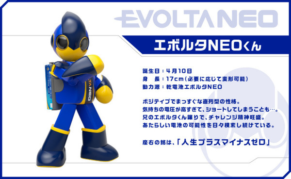 「エボルタNEOくん」は乾電池「エボルタNEO」の長もち性能を実証するため、世界を舞台にさまざまな乾電池の長もち実証チャレンジに挑戦してきた小型実証ロボット。世界が認めるロボットクリエーターである高橋智隆氏の手によって誕生した。乾電池「エボルタNEO」は2017年以降、「世界一長もちする単3形アルカリ乾電池」としてギネス世界記録に認定されている。