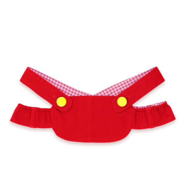 「LOVOT」本体と赤いハローキティウェアがセットになったオリジナルセット。赤いオーバーオールの裏地は、ピンクのギンガムチェックとなっている。購入すると限定のオリジナルナンバー入り七宝焼きチャームが付いてくる。価格は378,800円(税込)。