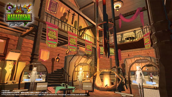 ラタトスクは異世界系ファンタジーアイテムの専門店。冒険者たちの集うギルドをイメージしたショップ内には、クエスト受注板や酒場のカウンターが並び、木造二階建ての広々とした空間と、炎の暖かな照明がJRPG的なファンタジーなアバターやアイテムをより一層映えさせる。