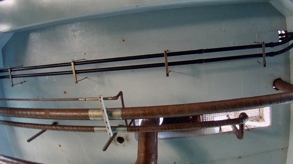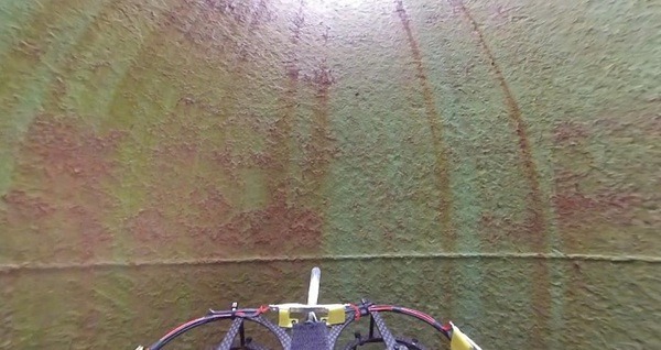 煙突内点検では、煙突底部から最上部までドローンを飛行させ、内部の塗装の剥がれ具合とひび割れの状況を撮影し、撮影成果物は点検の代替になりうることが分かった。