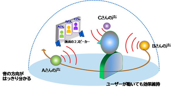 ビデオ会議で発言者の方向から声が聞こえてくる。