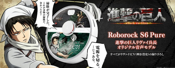 株式会社NTTぷららが運営するショッピングサービス「ひかりTVショッピング」は、テレビアニメ『進撃の巨人』の人気キャラクター、リヴァイ兵長(CV:神谷浩史氏)の完全録り下ろしボイスによる音声案内を搭載したロボット掃除機『Roborock S6 Pure 進撃の巨人 リヴァイ兵長オリジナル音声モデル』を2021年6月9日(水)より独占発売することを発表した。価格は69,800円(税込)。同商品の予約受付は本日5月26日(水)から開始し、6月1日(火)からは体験型ストア「b8ta 新宿マルイ店」に出展予定。発売前から店頭で体験することができる。
