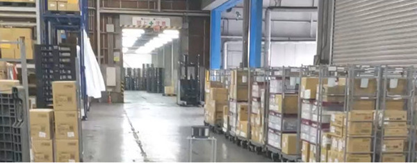 1. | 特定の曜日では、往復路で6輪カートを3台牽引して搬送。経路の始点・終点には作業者がおり、カートの送り出しと受け取りを1日に数百台単位で行う。 |