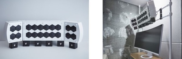 従来のオンライン会議では、リアルの会議と比較して音の臨場感がなく、聞きたい人の声が聞き取りづらいなど、スムーズな会話に課題があります。本サービスでは、マルチスピーカーと椅子に備え付けた重心センサーを組み合わせることで、重心の移動に合わせて音の聞こえ方を変化させるシステムを搭載。それにより、実際の会議室で参加しているような臨場感のある聞こえ方を実現する。