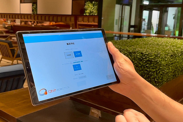 テナント店舗のタブレットから、ロボットに集荷の指示を入力。時間指定で予約もできる