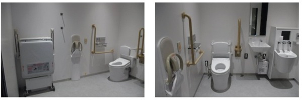 また、併設のトイレは全個室ベビーキープ付きで、オストメイト・介助ベッド敷設のバイアフリートイレも設置されている。