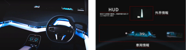 「コックピットコンセプト」には『人にやさしい』をテーマに、ドライバーの安全性に配慮した工夫が散りばめられている。車両情報や外界情報などの情報をフロントガラスに投影するヘッドアップディスプレイによって、ドライバーの視線移動を低減し、脇見運転など視線移動に伴う事故の防止に寄与。また、車内照明によって後方から近づく自転車等の情報をドライバーに注意喚起、手動運転と自動運転の切り替えを知らせるなど、車内のアンビエント照明もインテリアとしてだけでなくドライバーへの情報伝達の手段として活用している。