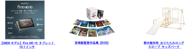 宮崎駿監督の作品集DVDや「Fire HD 10 (32GB)」、レイバンのサングラスも
