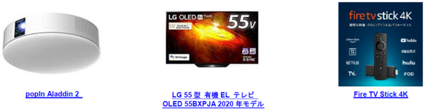 シーリングライト、プロジェクター、スピーカーが一体となった popIn Aladdin2 や、最新ゲーム機との超高速・8K画質でのHDMI2.1接続に対応したLGエレクトロニクスのテレビ OLED 55BXPJA など、おうち時間がさらに楽しくなる商品が登場。おうちのテレビをストリーミング対応にする Fire TV Stick 4K が通常販売価格から43%OFFの3,980円で登場。