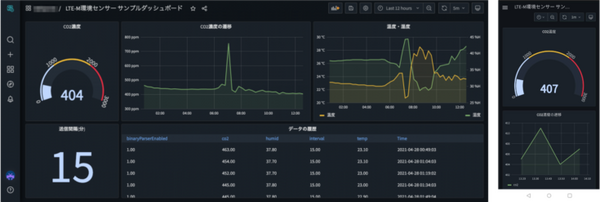 ひとつめは同デバイス専用の「サンプルダッシュボード」の公開。PCやスマートフォンで閲覧可能なグラフィカルなダッシュボードを作成・共有できるサービスSORACOM Lagoonにおいて、このテンプレートを利用することで、ソースのコピー&ペーストだけで手軽にデータの可視化を始めることができる。