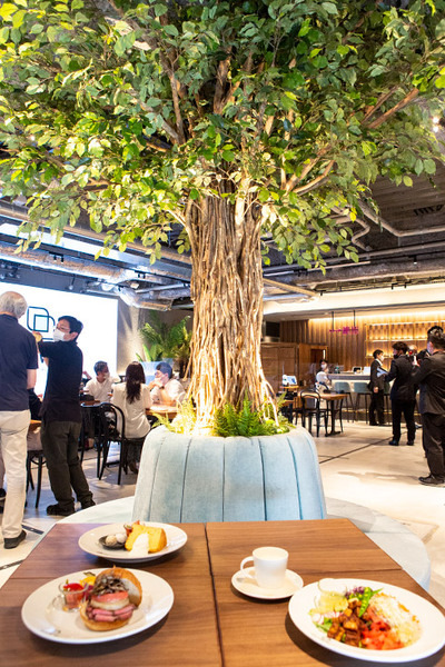 受付の「OriHime-D」の横には「世界樹」があります。今回の「分身ロボットカフェDAWN」は今までオープンしてきた分身ロボットカフェのテイストを少しずつ取り入れた、いわば結晶のようなもの。この世界樹は屋久島が思い浮かぶ、オリィ研究所を象徴するかのような大樹です。これはオリィ氏の「お気に入り」、見逃さないで!