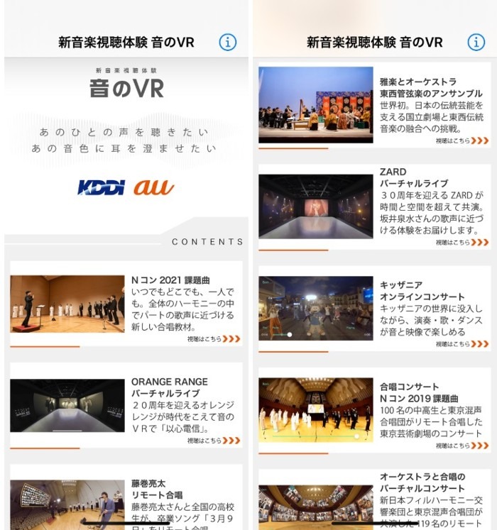 株式会社KDDI総合研究所は、独自のインタラクティブ視聴技術「音のVR」を活用し、昨年デビュー30周年を迎えたZARDや今年20周年を迎えたORANGE RANGEのバーチャルライブなどを開催している(後述)。